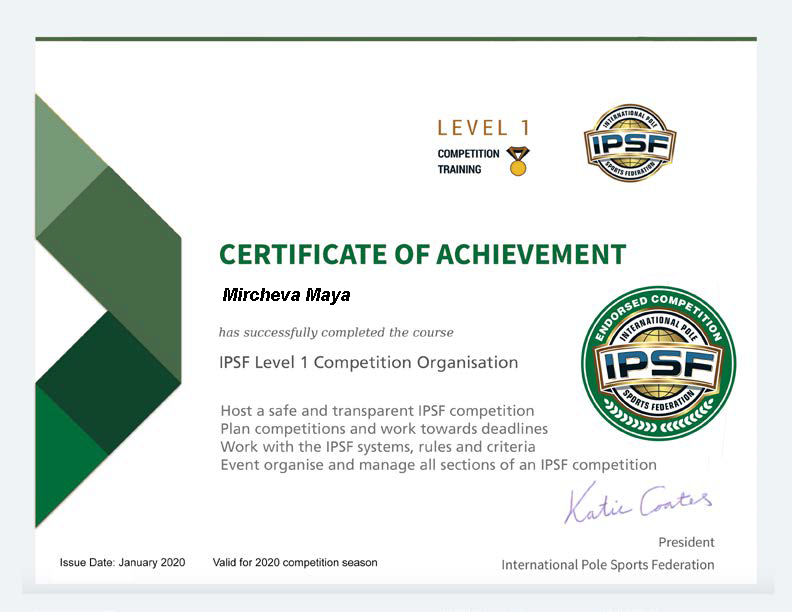 "Ein Traum ist mir in Erfühlung gegangen, als ich mein Studio im Mai 2015 eröffnete. Ich möchte Kinder, Jugendliche und Erwachsene, Frauen sowie Männer, für Pole Dance und Pole Sport begeistern und ihnen zeigen, dass die Akrobatik an der Stange ein hartes Training ist, aber dass jeder es erlernen kann, wenn man mit Leidenschaft und Disziplin dabei ist. Ich habe besondere Leidenschaft zu den Gymnastik Sportarten und mein Traum ist meine Schülern/Schülerinnen zum Nationale und Internationale Wettkämpfe zu führen. Ich sehe Pole Sport als eine Sportart, die sich nicht viel von den Sportarten in der Gymnastik Familie unterscheidet, und gerade als neue und moderne Sportart Potenzial hat diese zu konkurieren. Natürlich wir bieten Kurse für jeden an - egal ob Sie einfach für Hobby Pole Dance lernen möchten, Pole Dance als Ihr Beruf ausüben möchten, oder Pole Sportler/in werden wollen."